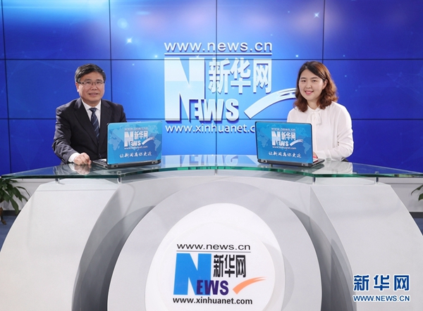 5月16日,外交部拉美司司長趙本堂(左)接受新華網獨家專訪。圖為趙本堂在接受本次訪談主持人、新華網海外傳播中心國際部主任徐倩專訪。新華網記者 郭小天攝