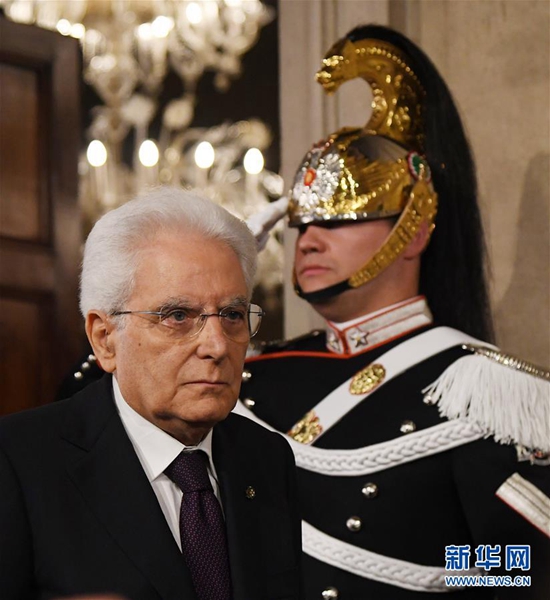 5月27日,在意大利首都羅馬,意總統(tǒng)馬塔雷拉出席新聞發(fā)布會。據(jù)當?shù)孛襟w報道,意大利新任總理孔特27日晚間與總統(tǒng)馬塔雷拉會面并提交擬定的內閣成員名單時,馬塔雷拉否決了由意大利聯(lián)盟黨和五星運動力推的持疑歐立場的經濟學家保羅·薩沃納出任財政部長。孔特向總統(tǒng)提出放棄組閣任務請求,請求得到總統(tǒng)確認。新華社發(fā)(阿爾貝托·林格里亞攝)