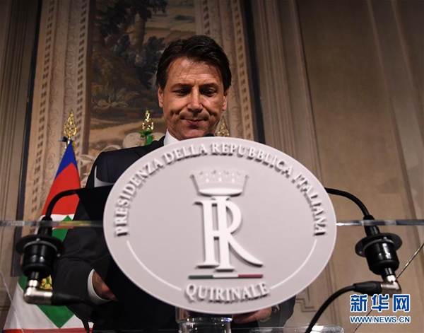 5月27日,在意大利首都羅馬,意新任總理孔特發(fā)表講話。據(jù)當(dāng)?shù)孛襟w報(bào)道,孔特27日晚間與總統(tǒng)馬塔雷拉會(huì)面并提交擬定的內(nèi)閣成員名單時(shí),馬塔雷拉否決了由意大利聯(lián)盟黨和五星運(yùn)動(dòng)力推的持疑歐立場(chǎng)的經(jīng)濟(jì)學(xué)家保羅·薩沃納出任財(cái)政部長。孔特向總統(tǒng)提出放棄組閣任務(wù)請(qǐng)求,請(qǐng)求得到總統(tǒng)確認(rèn)。新華社發(fā)(阿爾貝托·林格里亞攝)