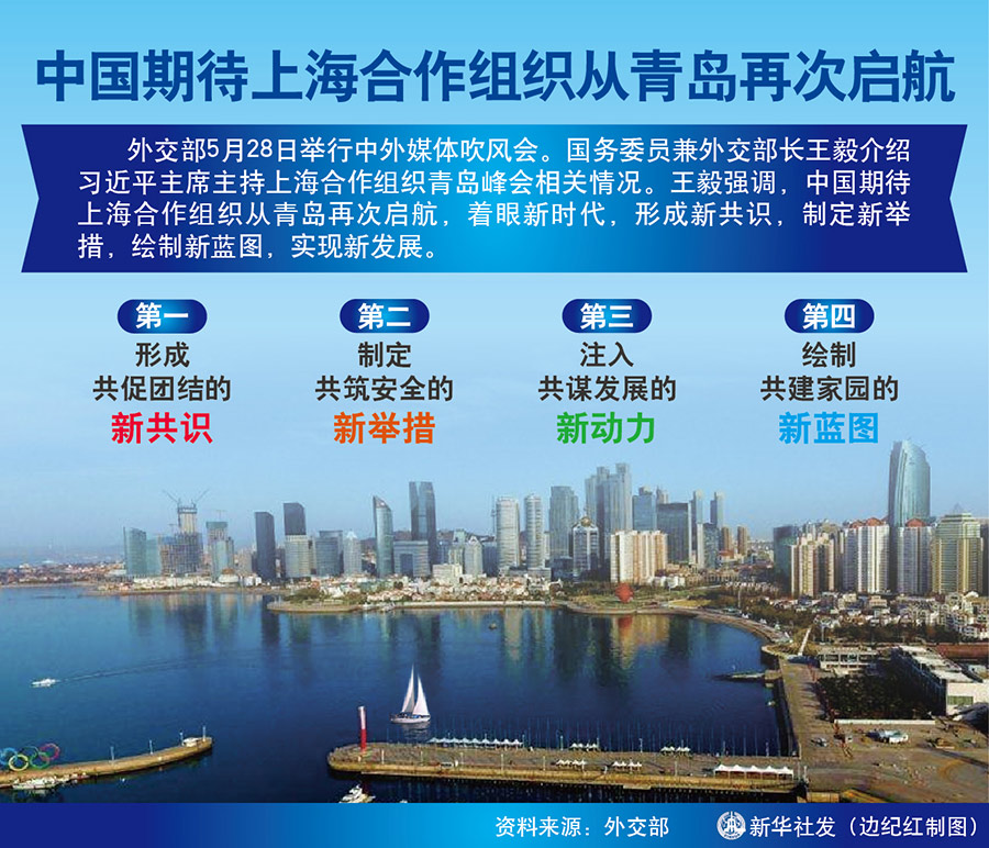 王毅強調,我們期待上海合作組織從青島再次啟航,著眼新時代,形成新共識,制定新舉措,繪制新藍圖,實現新發展。