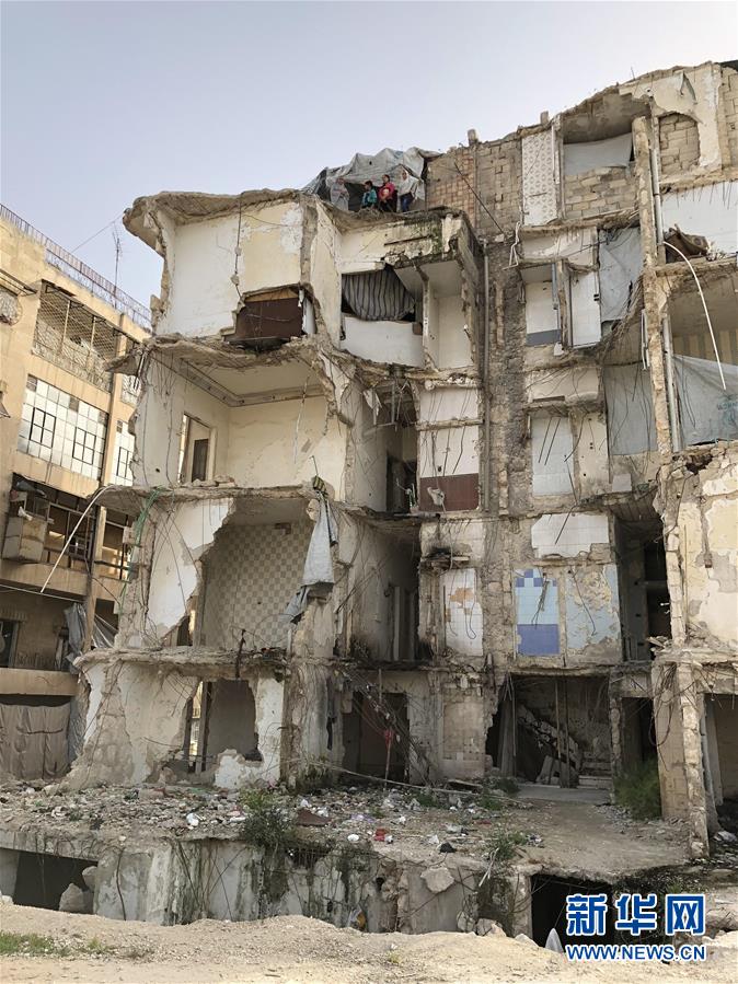 這是5月6日在敘利亞阿勒頗拍攝的阿明娜一家居住的居民樓。新華社發(胡馬姆·謝赫·阿里 攝)