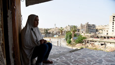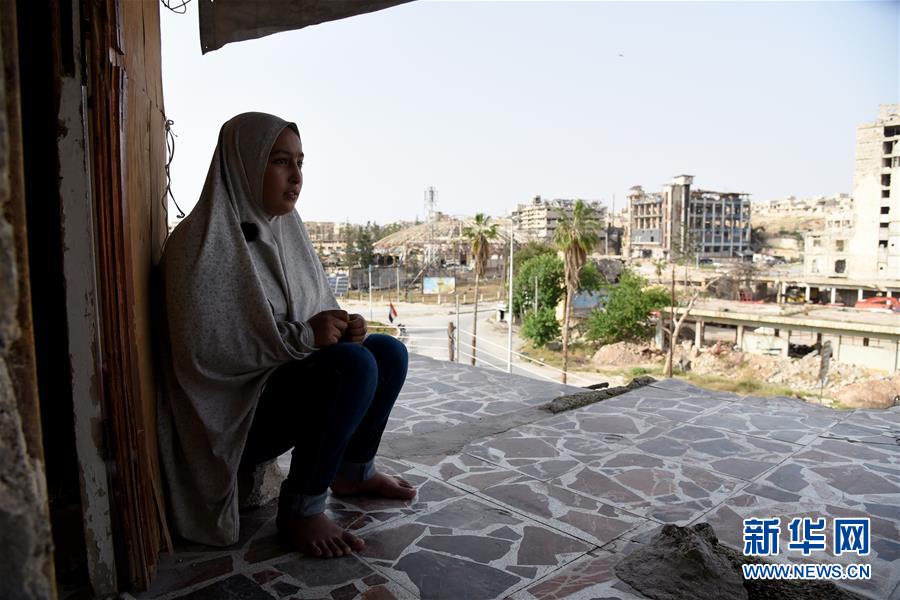 5月6日,在敘利亞阿勒頗,阿明娜坐在沒有圍欄的陽臺上。新華社發(胡馬姆·謝赫·阿里 攝)