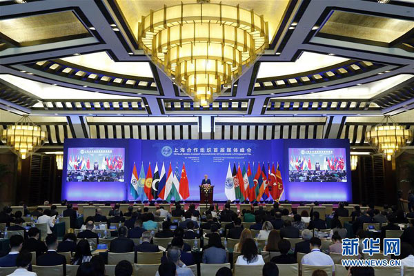 6月1日,由國(guó)務(wù)院新聞辦公室主辦的上海合作組織首屆媒體峰會(huì)在北京開(kāi)幕。這是上合組織秘書長(zhǎng)阿利莫夫在開(kāi)幕式上致辭。 新華社記者 沈伯韓攝