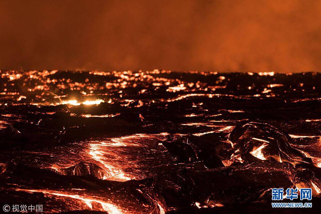6月9日,美國夏威夷,基拉韋厄火山持續噴發,夜空被巖漿照亮。(圖片來源:視覺中國)