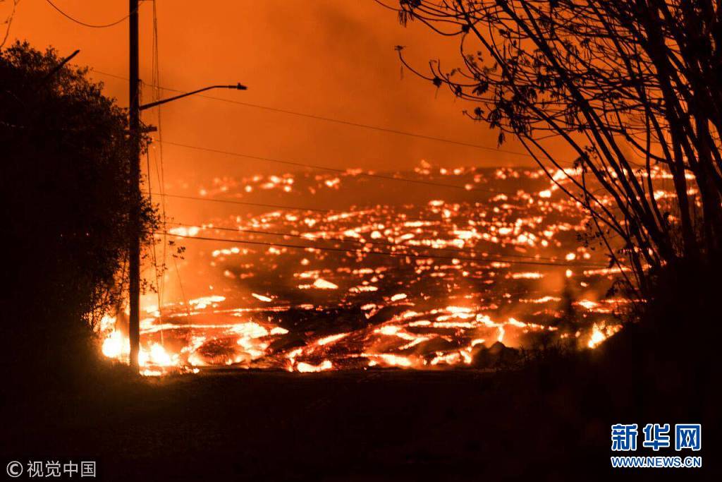 6月9日,美國夏威夷,基拉韋厄火山持續噴發,夜空被巖漿照亮。(圖片來源:視覺中國)