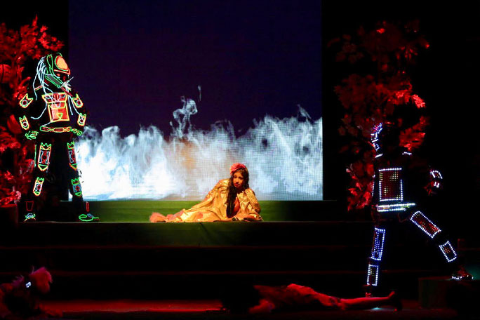 這部話劇講述了一個名叫丁丁的小女孩的奇幻冒險故事。丁丁遇見了四種神秘的生物,在這些神秘生物的帶領下,她經歷了一次奇幻之旅,最終還拯救了一位遭綁架的小仙女。
