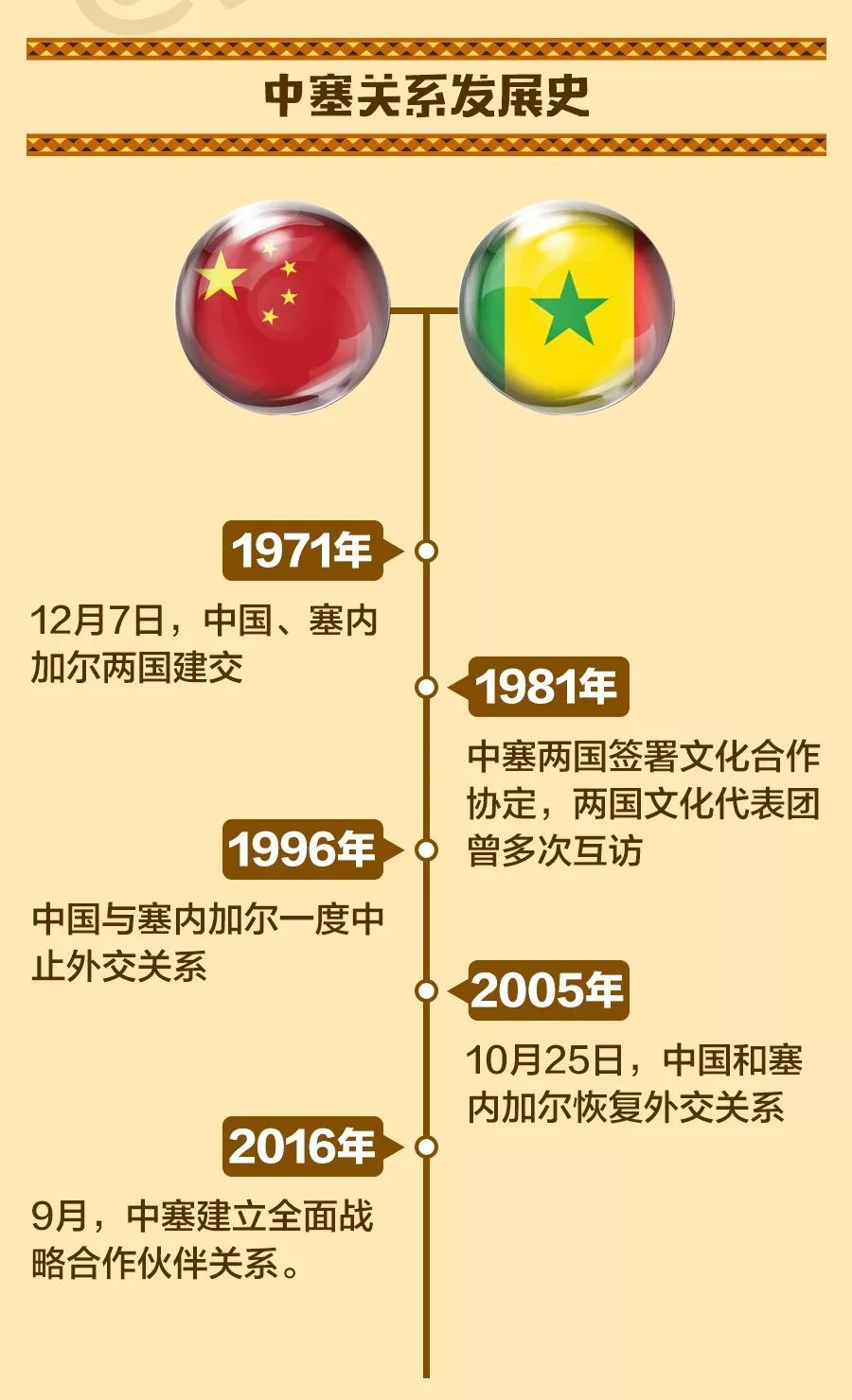 會談開始前,薩勒總統(tǒng)和塞內加爾民眾為習近平舉行了隆重熱烈的迎接儀式。當習近平乘車駛向總統(tǒng)府時,早已等候在沿途的萬余名當地民眾身著節(jié)日盛裝,或揮舞中塞兩國國旗,或擊鼓鳴樂,載歌載舞,熱情歡呼,夾道歡迎。通向總統(tǒng)府的共和國大道上,禮賓馬隊迎接護衛(wèi)習近平。駿馬威武矯健,踏樂前行。抵達總統(tǒng)府后,習近平檢閱儀仗隊。薩勒在總統(tǒng)府樓前迎接。兩國元首親切握手,合影留念。