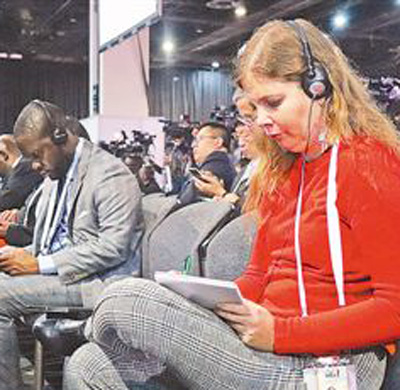 金磚國家工商論壇現(xiàn)場(chǎng),記者正在認(rèn)真記錄。本報(bào)記者 謝亞宏攝