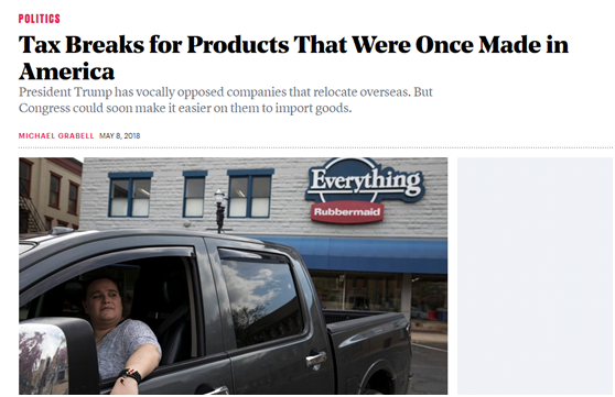這方面,美國的《大西洋月刊》倒是在今年5月美國對華貿(mào)易戰(zhàn)開打前有所關(guān)注。當時這家媒體認為,這個法案展現(xiàn)了美國當下貿(mào)易政策的一種矛盾:一方面美國國會兩黨都希望給大企業(yè)進一步減輕關(guān)稅壓力——甭管他們的產(chǎn)品到底是哪兒生產(chǎn)的;可另一方面美國總統(tǒng)特朗普卻多次表示要懲罰把工廠搬到美國境外的企業(yè)。