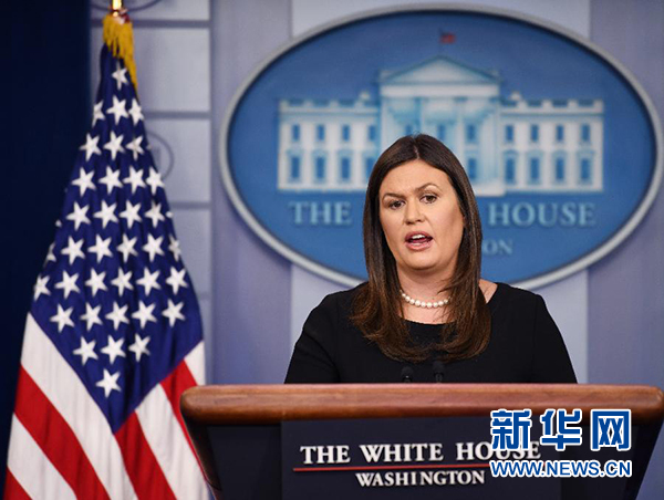 8月2日,在美國首都華盛頓,白宮發言人桑德斯出席記者會。新華社記者劉杰攝