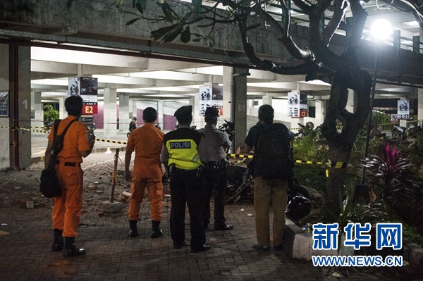 8月5日,在印度尼西亞西努沙登加拉省龍目島以西的巴厘島,幾名安保人員查看一處停車(chē)場(chǎng)里的落石。 新華社發(fā)(穆罕默德·福齊·哈尼亞戈攝)