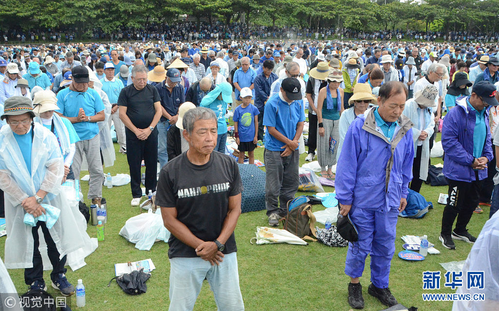 當地時間2018年8月11日,日本沖繩縣約7萬民眾8月11日在那霸市舉行大規模集會,反對駐日美軍將普天間基地遷往名護市邊野古地區,要求駐日美軍放棄在邊野古地區新建基地并立即關閉普天間機場。當天,日本東京都、大阪府、福岡、北海道縣等地民眾也同時舉行集會和游行,抗議日本政府推進邊野古地區填海施工。 (圖片來源:視覺中國)