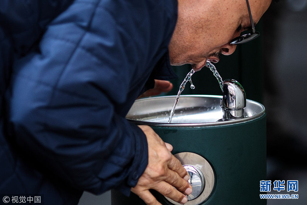 當地時間2018年8月28日,英國倫敦,民眾在公共飲水機旁飲水。倫敦市長近日引進了20個新的公共飲水機,鼓勵人們自帶杯子取水喝,從而減少塑料垃圾。 (圖片來源:視覺中國)