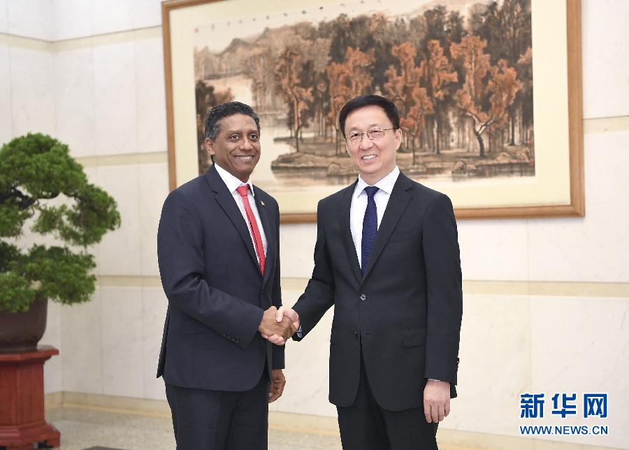 9月1日,國務(wù)院副總理韓正在北京釣魚臺國賓館會見塞舌爾總統(tǒng)富爾。 新華社記者 燕雁 攝
