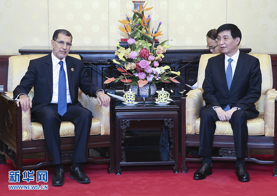9月4日,中共中央政治局常委、中央書記處書記王滬寧在北京釣魚臺(tái)國(guó)賓館會(huì)見摩洛哥首相奧斯曼尼。 新華社記者 姚大偉 攝