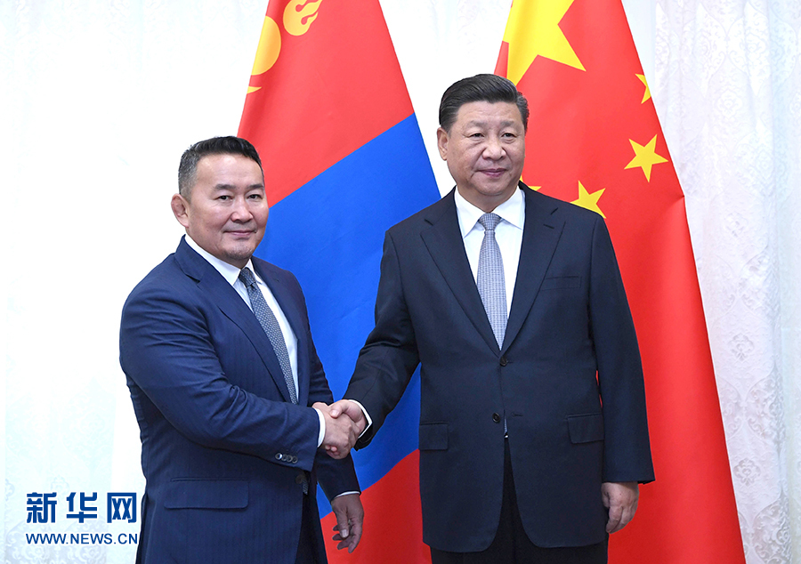 習近平指出,中方始終高度重視中蒙關系,將按照親誠惠容理念和與鄰為善、以鄰為伴方針,同蒙方加強交流合作,不斷推動中蒙全面戰略伙伴關系更好更快發展。雙方要加強對兩國關系的政治引領,從戰略高度和長遠角度把握好兩國關系發展正確方向。要相互理解和尊重彼此核心利益,深化彼此互信。中方尊重蒙古國獨立、主權、領土完整,尊重蒙古國人民自主選擇的發展道路。雙方要繼續大力推動“一帶一路”同“發展之路”對接,發揮好大項目對兩國務實合作的帶動和引領作用,積極支持兩國邊境毗鄰地區擴大交流合作。中方歡迎蒙方搭乘中國發展快車,分享中國改革開放成果,實現自身高質量發展。中方也支持蒙古國發展畜牧業和加工業,從蒙古國進口更多優質農牧產品。雙方要促進人文交流,夯實兩國關系的民意和社會基礎。雙方要加強在國際和地區事務中的溝通協調,協力推進區域合作。