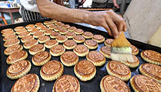 這個迄今為止新加坡最大的月餅由新加坡廣祥泰食品公司制作,直徑1.8米,厚20厘米,重約450公斤。月餅由9部分組成,分為黃蓮蓉、白蓮蓉和斑蘭3種口味,上面印有“種族和諧,歡慶中秋”字樣。
