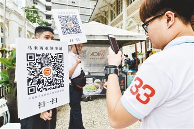 8月23日,一名游客在馬來西亞吉隆坡使用手機掃描“馬來西亞領事通”二維碼。新華社發