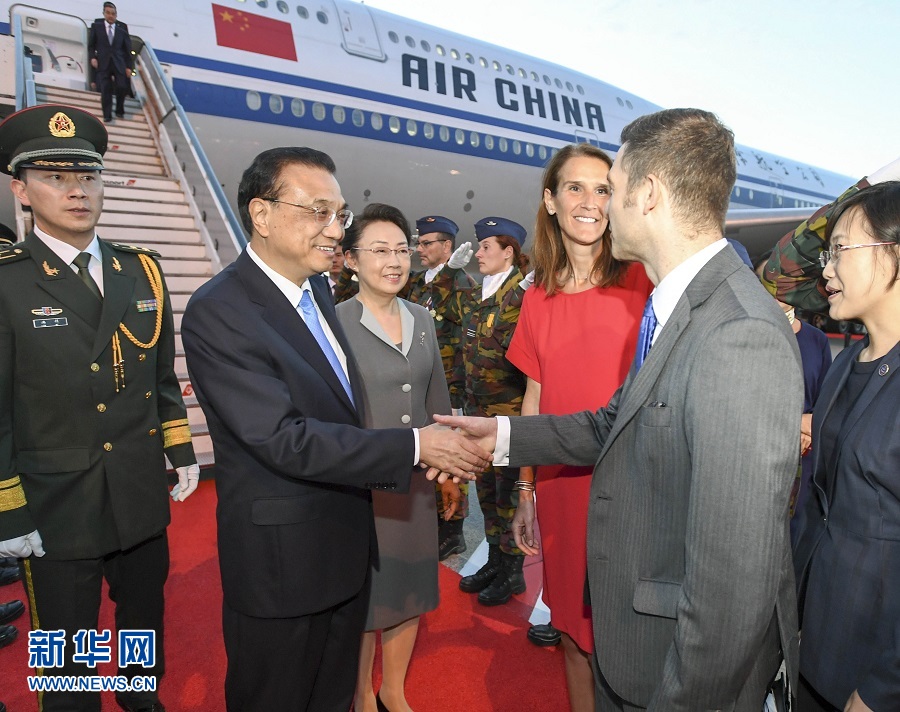 李克強總理夫人程虹,國務委員兼外交部長王毅,全國政協副主席、國家發展和改革委員會主任何立峰等陪同人員同機抵達。比利時政府內閣成員到機場迎接。禮兵沿紅地毯列隊,號手吹號致敬。中國駐歐盟使團團長張明、中國駐比利時大使曹忠明等也到機場迎接。