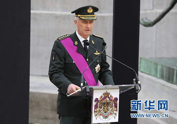 11月11日,在比利時首都布魯塞爾無名戰士廣場,比利時國王菲利普發表講話。新華社記者 葉平凡 攝
