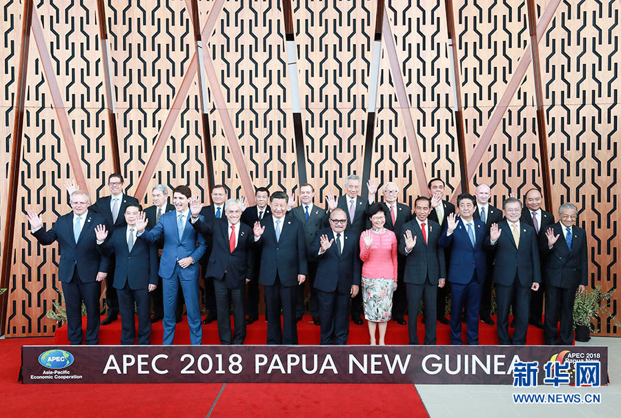 11月17日,國(guó)家主席習(xí)近平應(yīng)邀出席在巴布亞新幾內(nèi)亞莫爾茲比港舉行的亞太經(jīng)合組織工商領(lǐng)導(dǎo)人峰會(huì)并發(fā)表題為《同舟共濟(jì)創(chuàng)造美好未來(lái)》的主旨演講。同日,習(xí)近平還出席了亞太經(jīng)合組織領(lǐng)導(dǎo)人同工商咨詢理事會(huì)代表對(duì)話會(huì)。對(duì)話會(huì)前,習(xí)近平同其他亞太經(jīng)合組織成員經(jīng)濟(jì)體領(lǐng)導(dǎo)人、代表合影。 新華社記者 龐興雷 攝