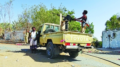 11月15日,在也門(mén)荷臺(tái)達(dá),支持也門(mén)政府的武裝人員在一輛軍車上。新華社發(fā)