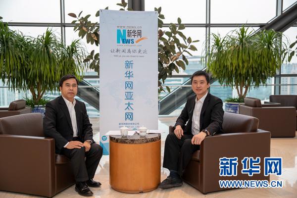 近日,中國銀行行長劉連舸在北京接受新華網專訪。圖為劉連舸(左)與本次訪談主持人吳磊對話。新華網 郭小天 攝