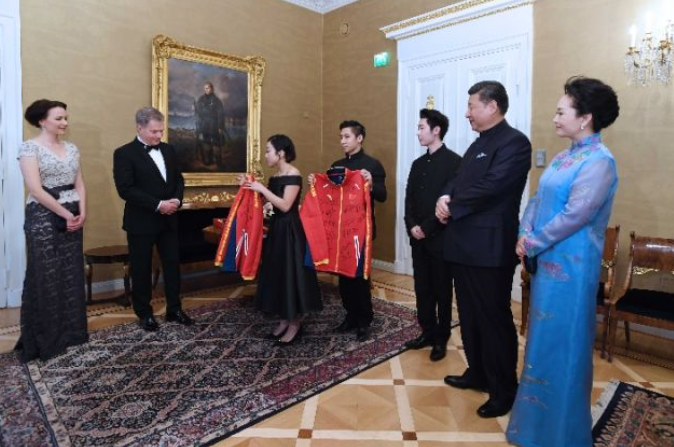 2017年4月訪問芬蘭期間,習近平主席同尼尼斯托總統共同會見剛剛參加完2017年世界花樣滑冰錦標賽的中芬兩國冰雪運動員代表。