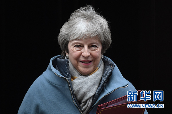 1月21日,在英國倫敦,英國首相特雷莎·梅離開唐寧街10號前往議會下院。 新華社發(蒂姆·愛爾蘭 攝)