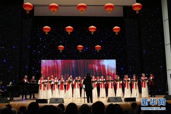 1月23日,在白俄羅斯首都明斯克,中國中央歌劇院的藝術家們在“歡樂春節”歌舞晚會上演唱。新華社記者 魏忠杰 攝