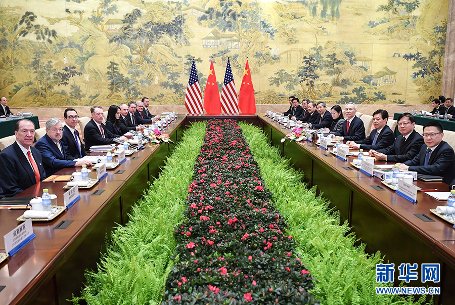 2月14日上午,中共中央政治局委員、國務院副總理、中美全面經濟對話中方牽頭人劉鶴與美國貿易代表萊特希澤、財政部長姆努欽共同主持中美經貿高級別磋商開幕式。本輪高級別磋商定于14-15日在北京舉行。