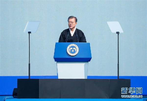 3月1日,韓國總統文在寅在首爾舉行的“三一運動”100周年大會上發表講話。 韓國總統文在寅1日在首爾光化門廣場出席紀念“三一運動”100周年大會時發表講話表示,韓國將力推構建“新半島體系”,實現韓朝之間共建“和平合作共同體”和“經濟合作共同體”。新華社記者 王婧嬙 攝
