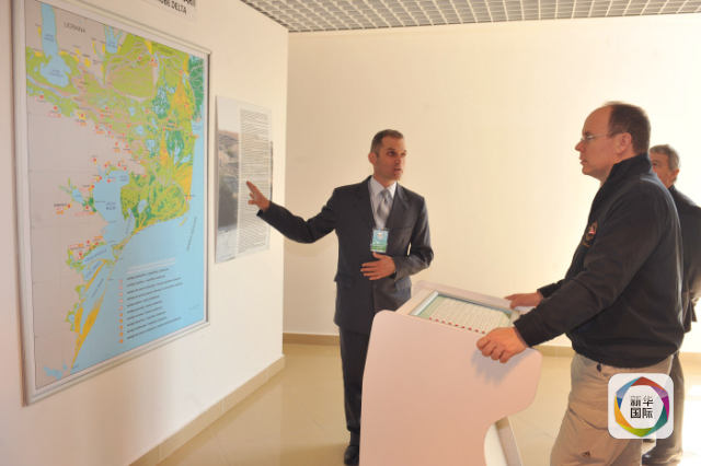 資料圖:阿爾貝二世親王參觀圖爾恰生態博物館。(新華社/伽瑪)