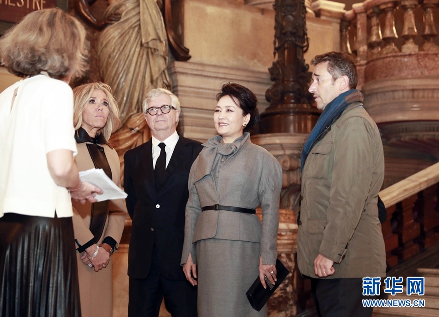 當地時間25日下午,國家主席習近平夫人彭麗媛參觀了巴黎歌劇院。彭麗媛在法國總統夫人布麗吉特陪同下,欣賞了法國歌唱家演唱的《魔笛》《唐璜》等莫扎特經典歌劇選段。表演方式也別有新意:在布置簡潔的舞臺上,歌唱家在一架鋼琴的伴奏下演唱,臺下指導老師隨時叫停進行指導……這種“互動教學式”表演新穎生動,彭麗媛不時鼓掌稱贊。演出結束后,彭麗媛同巴黎歌劇院藝術家們進行了親切交流,對他們的精彩表演表示感謝。聽說歌劇院有關演出團隊將于今年訪華演出時,彭麗媛高興地說,歡迎更多法國藝術家赴華交流演出,預祝你們演出取得成功。