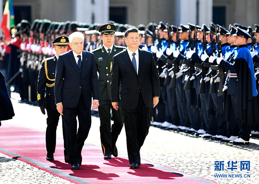 3月22日,國(guó)家主席習(xí)近平在羅馬同意大利總統(tǒng)馬塔雷拉舉行會(huì)談。會(huì)談前,馬塔雷拉總統(tǒng)為習(xí)近平舉行隆重歡迎儀式。新華社記者 謝環(huán)馳 攝