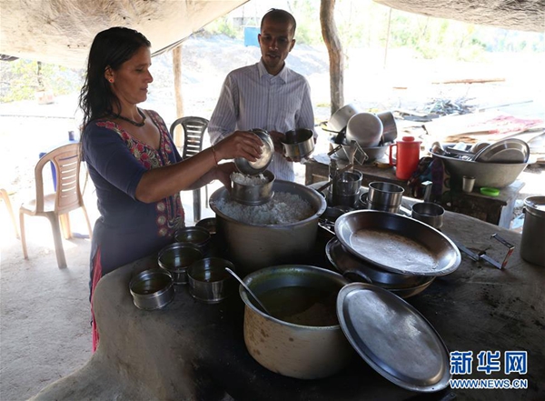 3月26日,在尼泊爾蘇爾凱德,阿查亞(右)與占茜準(zhǔn)備食物。新華社發(fā)(蘇尼爾·夏爾馬 攝)