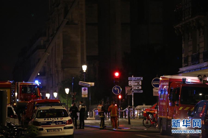 4月15日,在法國巴黎,警車和消防車??吭诎屠枋ツ冈号?。新華社記者 高靜 攝