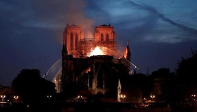 有“法國(guó)國(guó)寶”之稱的巴黎圣母院15日晚突發(fā)大火,尖塔倒塌、屋頂坍陷,消防隊(duì)員正在加緊搶救館藏藝術(shù)品。