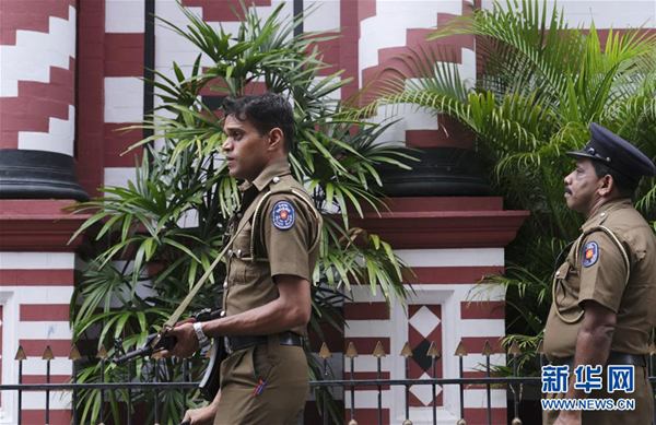 4月26日,在斯里蘭卡科倫坡,警察在城市街道上警戒。新華社發(王申攝)