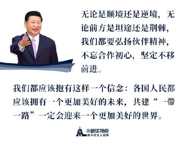 “我們要乘勢而上、順勢而為,推動‘一帶一路’建設行穩致遠,邁向更加美好的未來。”習主席在首屆高峰論壇上這樣說。