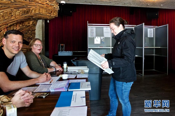 5月23日,在荷蘭哈勒姆,選民準備投票。五年一次的歐洲議會選舉于5月23日至26日舉行。新華社發(西爾維亞·萊德爾 攝)