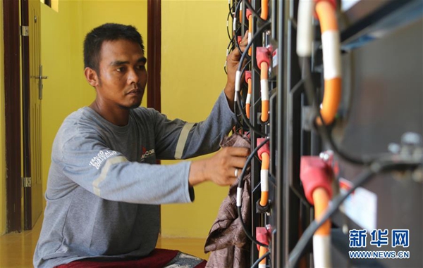 6月6日,在菲律賓北部偏遠山區的巴利瓦特村,村民迪奧內斯托·埃斯特萬在太陽能發電站進行電力設備日常檢查和維護。新華社記者 鄭昕 攝