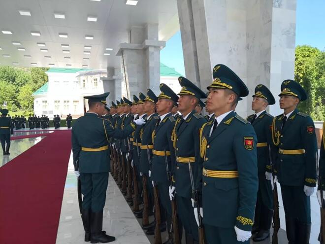 檢閱儀仗隊時,習近平主席走到儀仗隊中央,用吉爾吉斯語向儀仗隊員問候:戰士們好!儀仗隊員用吉爾吉斯語回答:歡迎您!