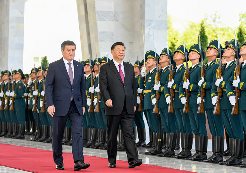 習近平說,中吉建交27年來,兩國關系經受住國際風云考驗,實現跨越發展,樹立了相互尊重、平等合作、互利共贏的新型國家關系典范。