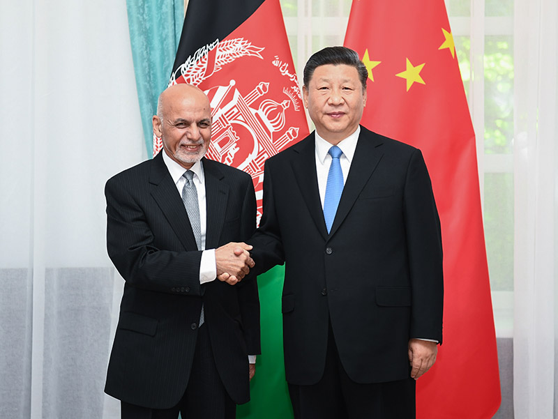 6月13日,國家主席習近平在比什凱克會見阿富汗總統加尼。新華社記者 謝環馳 攝
