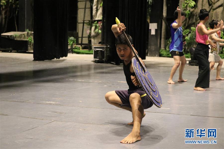 6月11日,在柬埔寨暹粒,孫塞貼農(nóng)在演出前進行排練。新華社記者 毛鵬飛 攝