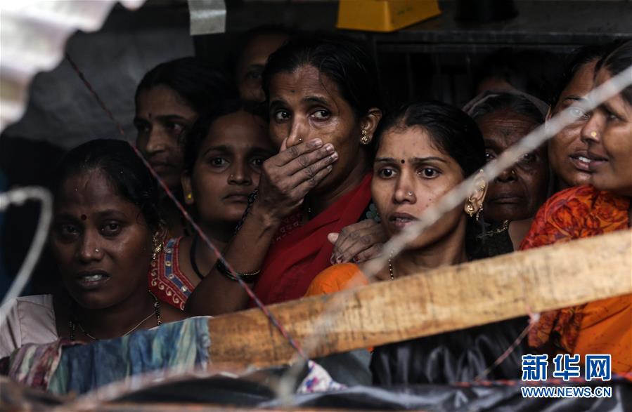 7月2日,在印度孟買,人們聚集在墻體垮塌事故現場。新華社發