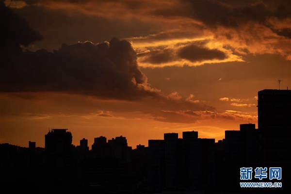 這是7月22日傍晚拍攝的委內瑞拉首都加拉加斯停電的情況。新華社發(馬爾科斯·薩爾加多 攝)