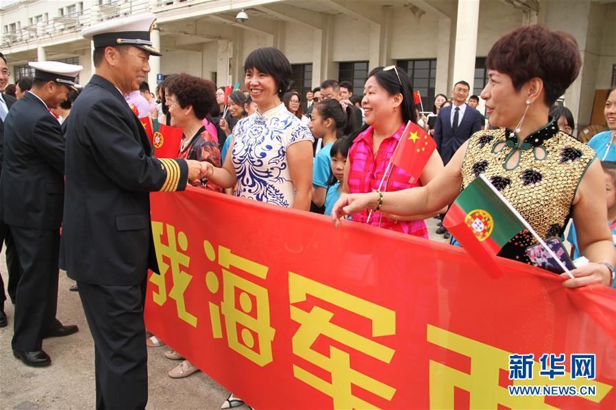 中國駐葡萄牙大使蔡潤、使館外交官以及中資機構、華僑華人代表近200人到碼頭熱烈迎接,并參加了登艦參觀活動。