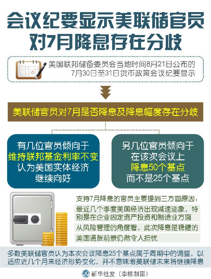 新華社華盛頓8月21日電(記者 高攀 楊承霖)美國聯(lián)邦儲備委員會21日公布的7月貨幣政策會議紀(jì)要顯示,美聯(lián)儲官員對7月是否降息及降息幅度存在分歧。